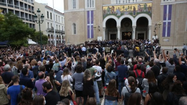 Τελέσθηκε το νεκρώσιμο τρισάγιο για τον Μίκη Θεοδωράκη στην Ιερό Καθεδρικό Ναό Ευαγγελισμού της Θεοτόκου (Μητρόπολη Αθηνών).