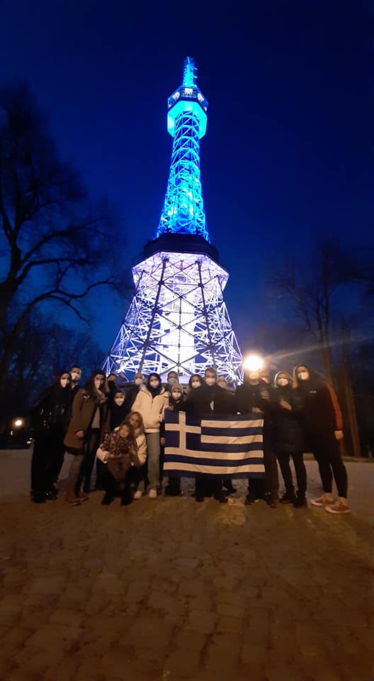 O Πύργος Petřin της Πράγας φωτίζεται με τα ελληνικά χρώματα προς τιμήν της εθνικής επετείου.