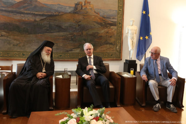 Της σημερινής συνεδρίασης προήδρευσε ο επανεκλεγείς βουλευτής Α’ Αθηνών και α’ αντιπρόεδρος της προηγούμενης Βουλής, Νικήτας Κακλαμάνης, ο οποίος υποδέχτηκε τον Αρχιεπίσκοπο και την συνοδεία του και τους συνόδευσε στο γραφείο του Προέδρου κ. Κωνσταντίνου Τασούλα, όπου είχαν μία σύντομη συζήτηση και στην συνέχεια στην αίθουσα συνεδριάσεων της Βουλής για την τελετή ορκωμοσίας.