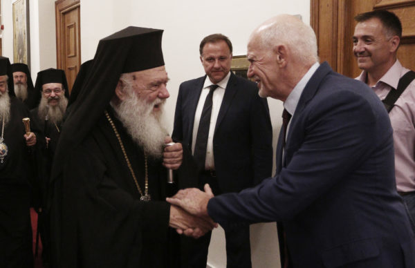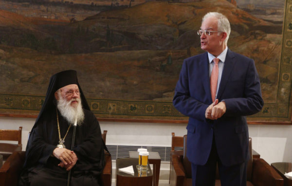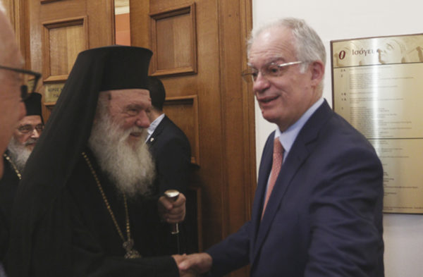 Τον Αρχιεπίσκοπο και την αντιπροσωπεία της ΔΙΣ υποδέχθηκε στην είσοδο της Βουλής ο κ. Νικήτας Κακλαμάνης, Α’ Αντιπρόεδρος της προηγούμενης Βουλής, ο οποίος και προήδρευσε της συνεδρίασης.