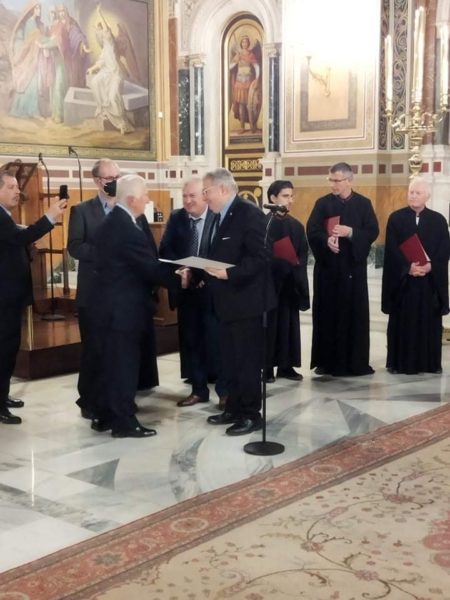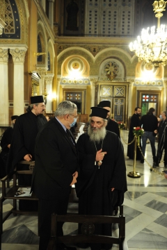 Τον Μακαριώτατο Αρχιεπίσκοπο Αθηνών εκπροσώπησε ο Αιδεσιμολ. Πρωτοπρ. π. Θωμάς Συνοδινός, Πρόεδρος του Εκκλησιαστικού Συμβουλίου του Καθεδρικού Ιερού Ναού Αθηνών. Η Ελληνική Κυβέρνηση – διά του Γενικού Γραμματέα του Υπουργείου Εξωτερικών κ. Ιωάννου Χρυσουλάκη – εκπροσωπήθηκε για πρώτη φορά, σε εκδήλωση του Συνδέσμου Ιεροψαλτών Περιφέρειας Αττικής Ρωμανός ο Μελωδός και Ιωάννης ο Δαμασκηνός.