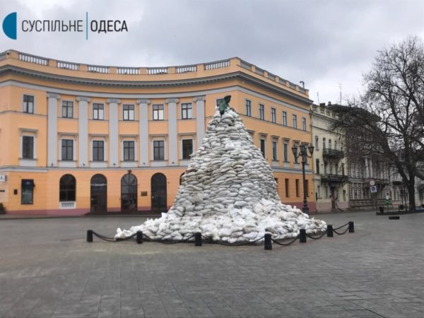 One of the symbols of Odessa, the monument to Duke de Richelieu, is surrounded by sandbags, writes Suspilne #Odessa pic.twitter.com/UWUzub5WXv