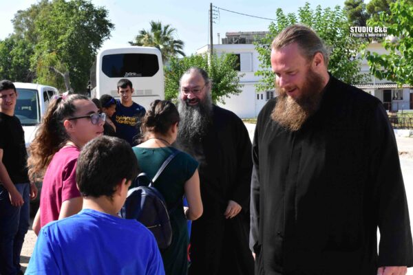 Η αποστολή των παιδιών συνοδευόμενα από μοναχές της Ιεράς Μονής υποδέχθηκαν οι εφημέριοι των Ναών π. Βασίλειος Γκολέμης και π. Παναγιώτης Κιντής.