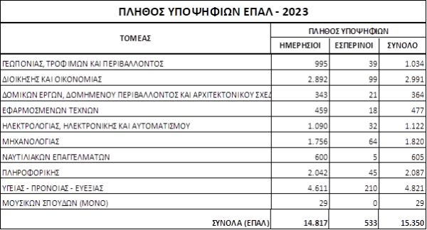 Επισημαίνεται ότι το πλήθος των υποψηφίων ΓΕΛ/ΕΠΑΛ προκύπτει από τη συμμετοχή σε τουλάχιστον δύο πανελλαδικώς εξεταζόμενα μαθήματα (εκτός των Μουσικών Σπουδών).