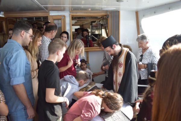 Κατὰ τὴν διάρκεια τοῦ τετράωρου παράπλου τῆς δυτικῆς πλευρᾶς τῆς ἀθωνικῆς χερσονήσου πραγματοποιήθηκε προσκύνηση Τιμίων Λειψάνων καὶ κειμηλίων ἀπὸ Ἱερὲς Μονές, μία ἰδιαίτερη και ξεχωριστή εὐκαιρία εἰδικῶς γιὰ τὶς γυναῖκες.