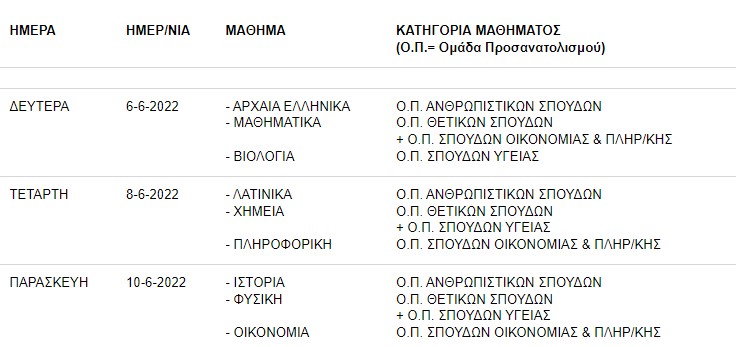 Την Τετάρτη, 8 Ιουνίου, οι υποψήφιοι των ΓΕΛ εξετάζονται σε Λατινικά, Χημεία, Πληροφορική και ολοκληρώνουν τα εξεταζόμενα μαθήματα την Παρασκευή, 10 Ιουνίου, με Ιστορία, Φυσική, Οικονομία.