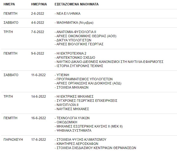 Την Τρίτη, 7 Ιουνίου, ακολουθούν οι εξεταζόμενοι των ΕΠΑΛ σε Ανατομία-Φυσιολογία ΙΙ, Αρχές Οικονομικής Θεωρίας (ΑΟΘ), Δίκτυα Υπολογιστών και Αρχές Βιολογικής Γεωργίας.