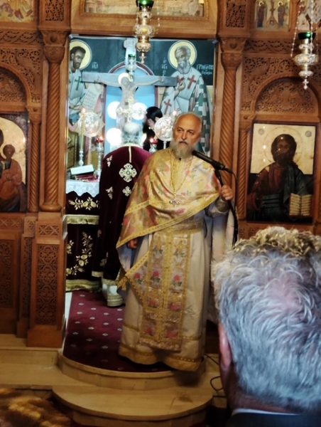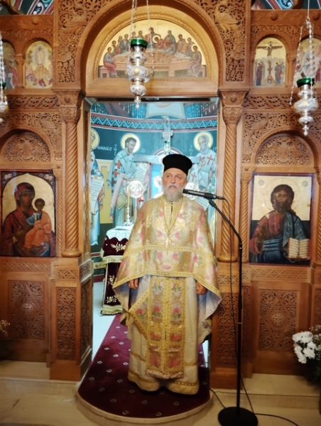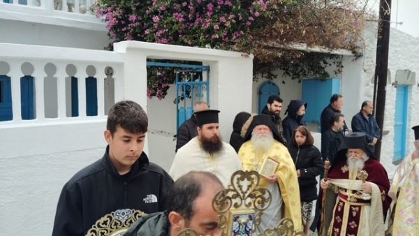 Των Ιερών Ακολουθιών προέστη ο Αρχιμανδρίτης Φιλάρετος Θηραιός, Ηγούμενος της Ιεράς Μονής Παναγίας Χοζοβιωτίσσης και Εφημέριος Σχοινούσας, με συλλειτουργούς τον Αρχιμανδρίτη Θεόφιλο Αριαντζη από την ίδια Μονή και εφημέριο Ιερού Ναού Αγίου Σπυρίδωνος Βρουτσιου Αμοργου και τον Πρωτοπρεσβύτερο Νικόλαο Αργυρίου, Εφημέριο του Ιερού Ναού Αγίου Παντελεήμονος Λουτρών Αιδηψού ενώ συμπροσευχομενος ήταν και ο π. Αντώνιος Δεσποτιδης Εφημέριος Ιερού Ναού Αναλήψεως Ποταμού Αμοργού .