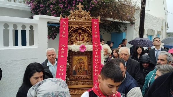 Την παραμονή της εορτής τελέστηκε ο Μεγάλος Εσπερινός και ο Ακάθιστος Ύμνος στον Ιερό Ναό της Παναγίας, παρουσία πιστών από τη Σχοινούσα, την Αμοργό, τη Σαντορίνη, την Ηρακλειά την Νάξο και άλλες περιοχές. Ανήμερα της εορτής, τελέστηκε πανηγυρική Θεία Λειτουργία και λιτάνευση της ιερής εικόνας της Παναγίας, συνοδεία ιερού κλήρου και πιστών.
