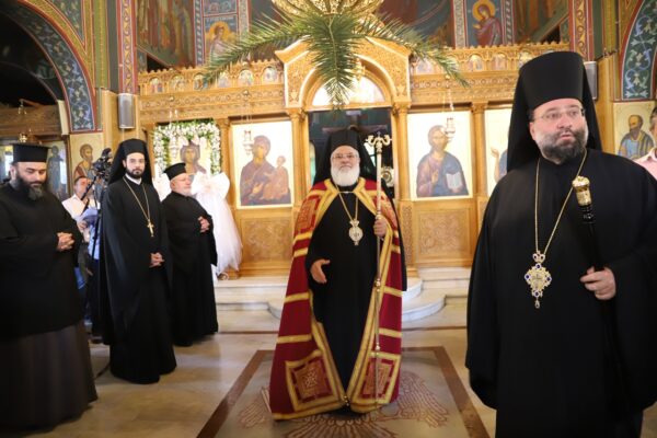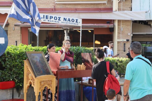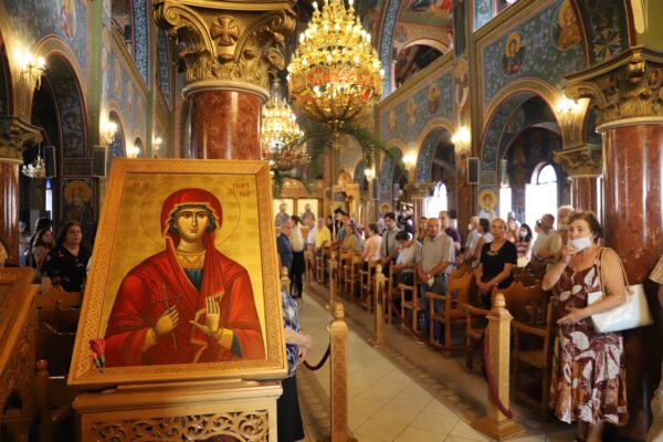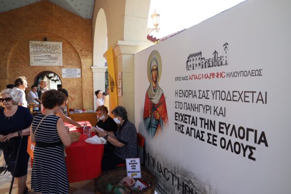 Τελέστηκε ο πανηγυρικός Εσπερινός στον εορτάζοντα Ιερό Ναό της Αγίας Μαρίνας στην Ηλιούπολη, χοροστατούντος του Σεβασμιωτάτου Μητροπολίτου Βρεσθένης κ. Θεοκλήτου και του Σεβασμιωτάτου Μητροπολίτου Ισπανίας κ. Πολυκάρπου. Οι πιστοί προσήλθαν στον Ιερό Ναό από νωρίς κρατώντας τις αποστάσεις στο πλαίσιο των μέτρων πρόληψης και αντιμετώπισης του κινδύνου διασποράς του νέου κορωνοϊού Covid-19.