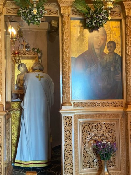 Την Ιερή Ακολουθία στην οποία συμμετείχαν κάτοικοι του προαστείου Καλλιθέας αλλά και των γύρω περιοχών, τέλεσε ο εφημέριος και προϊστάμενος του ναού π. Νικόλαος Παπαδάκης και έψαλλε ο Δημήτριος Χειλαδάκης.
