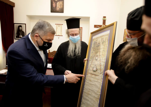 Ο Αρχιμανδρίτης Αγαθάγγελος σε δηλώσεις του ευχαρίστησε τον Περιφερειάρχη και πρόσθεσε: «Η Μονή ευγνωμονεί, δεν θα λησμονήσει ποτέ την προσφορά που κάνατε, η οποία δεν έχει μόνο εκκλησιαστικό αλλά και εθνικό χαρακτήρα. Το Σινά πάντοτε ήταν ένας πρέσβης όσον αφορά στην ελληνοαραβική φιλία. Για αυτό το πολύτιμο έργο σας ευχαριστούμε και θα σας μνημονεύουμε πάντοτε και εσάς και τους συνεργάτες σας».