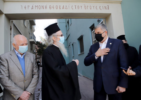 Τον Περιφερειάρχη Αττικής Γ. Πατούλη συνόδευε στις εγκαταστάσεις που βρίσκονται στον Ι.Ν. Αγίας Αικατερίνης Μετόχι Ι. Μ. Όρους Σινά, (πλησίον Πλατείας Μαβίλη) ο Περιφερειακός Σύμβουλος και Μέλος του Δ.Σ. της ΕΝΠΕ Γ. Βλάχος. Τα τρόφιμα παρέλαβε αντιπροσωπεία του «Ελληνικού Συνδέσμου Παναγίου Τάφου και ιεράς Μονής Σινά» με επικεφαλής τον Πρόεδρο του Δ.Σ. Λ. Μάρκου, παρουσία του Πανοσιολογιώτατου Αρχιμανδρίτη Αγαθάγγελου προϊστάμενου του Ι. Ν. Αγίας Αικατερίνης. Παρόντες ήταν και οι Σιναΐτες πατέρες Μιχαήλ και Γεννάδιος.