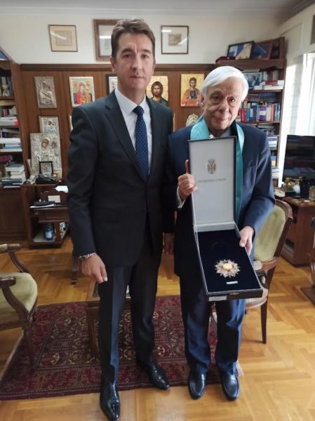 Την Πέμπτη, 1η Σεπτεμβρίου, ο Πρέσβης της Δημοκρατίας της Σερβίας στην Ελλάδα κ. Dušan Spasojević επισκέφθηκε τον τέως Πρόεδρο της Δημοκρατίας κ. Προκόπιο Παυλόπουλο στο γραφείο του και του επέδωσε το «Παράσημο της Δημοκρατίας της Σερβίας μετά ταινίας», το οποίο του απένειμε ο Πρόεδρος της Σερβίας κ. Aleksandar Vučić (διάταγμα αρ. KOPR 3, 12 Φεβρουαρίου 2021) «για την εξαίρετη συμβολή του στην ανάπτυξη και ενδυνάμωση της συνεργασίας και των φιλικών σχέσεων μεταξύ της Δημοκρατίας της Σερβίας και της Ελληνικής Δημοκρατίας» κατά την διάρκεια της θητείας του ως Προέδρου της Δημοκρατίας .