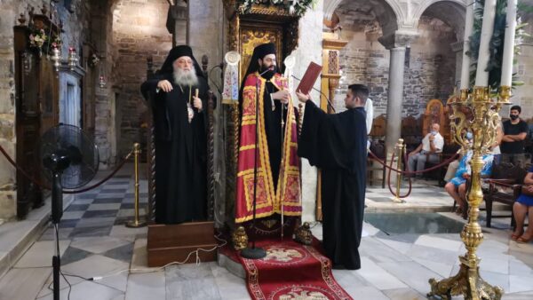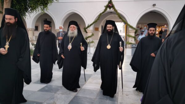Βάρεσαν δυνατά οι καμπάνες στην Εκατονταπυλιανή της Πάρου για την γιορτή της Παναγιάς, κατά την εσπέρα της 14ης Αυγούστου 2020. Την Παρασκευή, το μεσημέρι, ο Σεβασμιώτατος Μητροπολίτης Παροναξίας υπεδέχθη τον προσκεκλημένο για την Πανήγυρη της Παναγίας Εκατονταπυλιανής Θεοφιλέστατο Επίσκοπο Ευρίπου κ. Χρυσόστομο και την συνοδεία του. Ο Θεοφιλέστατος Επίσκοπος προεξάρχει του Πανηγυρικού Εσπερινού στην πανηγυρίζουσα νήσο Πάρο.