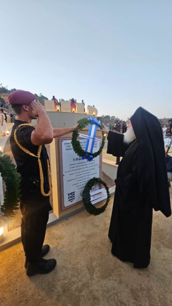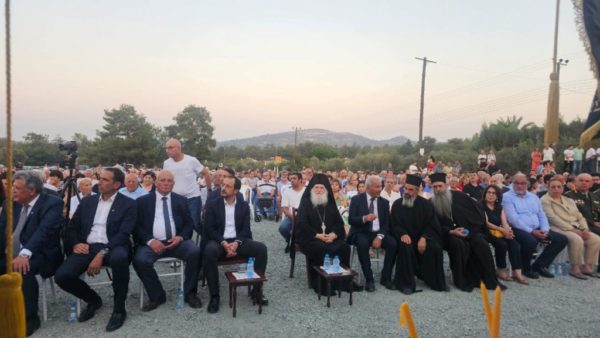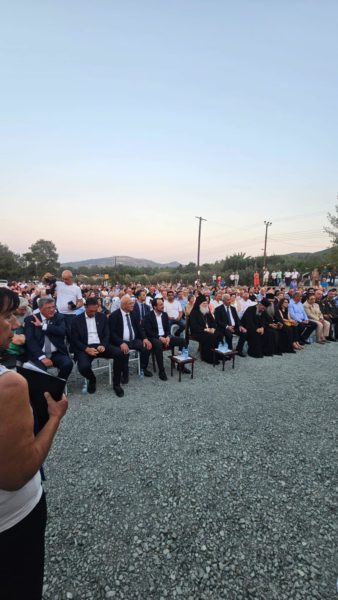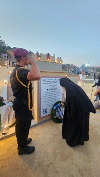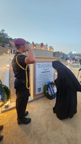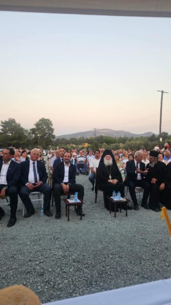 “Ο δρόμος της προσφοράς του Γέροντα δεν μπορούσε να μην περάσει και από τον τόπο καταγωγής του, την Περιστερωνοπηγή Αμμοχώστου. Η Ιερά Μεγίστη Μονή Βατοπαιδίου ανέλαβε, ως γνωστό, όλα τα έξοδα ανέγερσης του Μνημείου και αποτελεί έναν από τους μεγαλύτερους ευεργέτες των δύο κοινοτήτων. Το γεγονός ότι ένα από τα 33 θύματα της βιαιότητας των Τούρκων εισβολέων είναι και ο μακαριστός πατέρας σας, Γέροντα Εφραίμ, δίνει και μια άλλη, πιο προσωπική, αν θέλετε, διάσταση στη σχέση σας με τα γεγονότα και τα πρόσωπα του Μνημείου“, τόνισε και συμπλήρωσε: