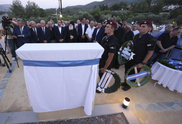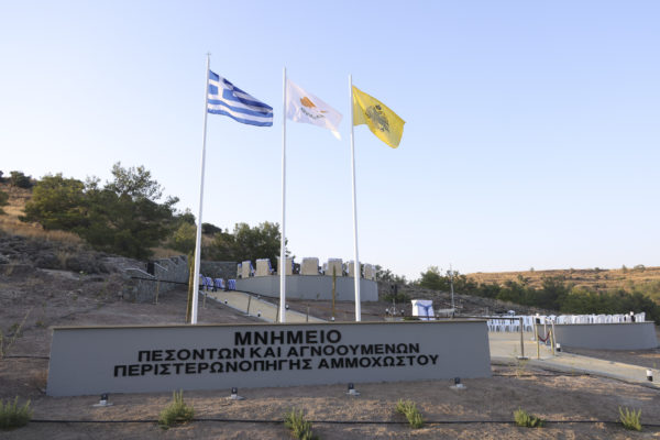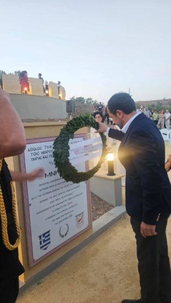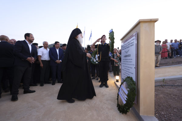 Ο Πρόεδρος της Κυπριακής Δημοκρατίας κ. Νίκος Χριστοδουλίδης, παρουσία του Καθηγουμένου της Ιεράς Μεγίστης Μονής Βατοπαιδίου Αγίου Όρους, Γέροντα Εφραίμ, τέλεσε σήμερα τα αποκαλυπτήρια του Μνημείου των 33 πεσόντων και αγνοουμένων κατά την τουρκική εισβολή 1974, των κοινοτήτων Πηγής και Περιστερώνας, στον δρόμο Μοσφιλωτής – Ψευδά.