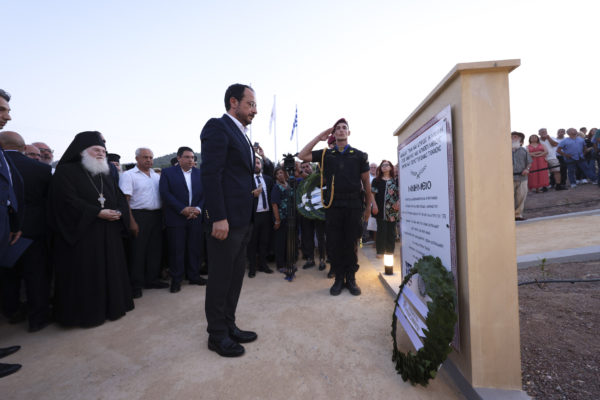 Παρουσία του Νίκου Χριστοδουλίδη και του Γέροντα Εφραίμ τα αποκαλυπτήρια Μνημείου Πεσόντων, Δολοφονηθέντων και Αγνοουμένων Περιστερωνοπηγής