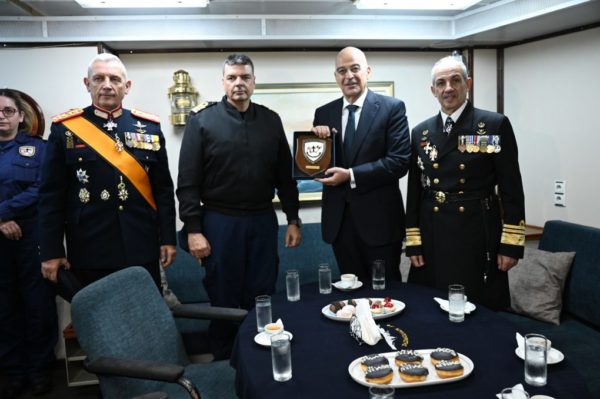 Ο κ. Δένδιας ενημερώθηκε για την αποστολή της Φρεγάτας και αντάλλαξε ευχές με τον Κυβερνήτη Αντιπλοίαρχο Κωνσταντίνο Κόκκαλη ΠΝ και το προσωπικό που υπηρετεί σε αυτήν.