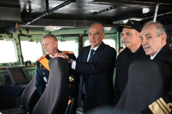 Ο κ. Δένδιας ενημερώθηκε για την αποστολή της Φρεγάτας και αντάλλαξε ευχές με τον Κυβερνήτη Αντιπλοίαρχο Κωνσταντίνο Κόκκαλη ΠΝ και το προσωπικό που υπηρετεί σε αυτήν.