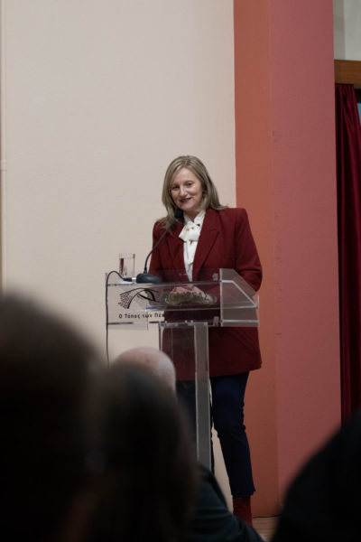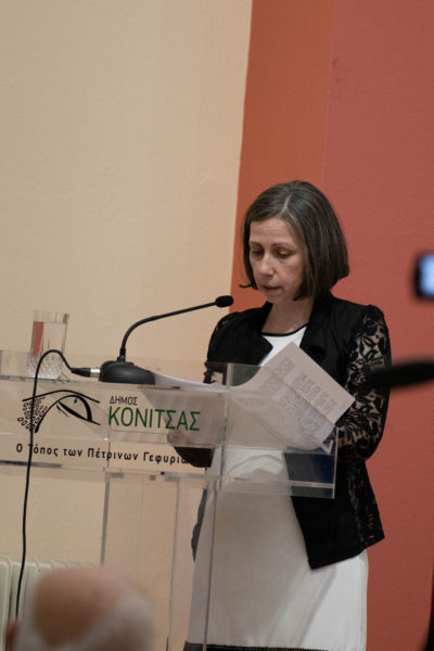 Το μικρόφωνο μετά πήρε η συγγραφέας του βιβλίου κα. Φιλοθέη Μερκούρη – Κοσμά η οποία συγκινημένη μοιράστηκε με τους ακροατές προσωπικά βιώματα και σκέψεις με κέντρο αναφοράς τον Άγιο Γεώργιο τον εν Ιωαννίνοις. Γεμάτη ευγνωμοσύνη ευχαρίστησε όλους τους συντελεστές που θυσίασαν κόπο και χρόνο, τον Δήμο Κόνιτσας ως επίσημο χορηγό και φυσικά όλους όσοι παρευρέθηκαν στη βιβλιοπαρουσίαση.