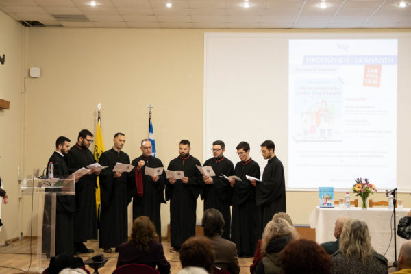 Την εκδήλωση άνοιξε η βυζαντινή χορωδία νέων, υπό τη διεύθυνση του κ. Χρήστου Παπαδόπουλου, όπου απέδωσαν κατανυκτικά επιλεγμένα τροπάρια από τον Κανόνα του Αγίου Γεωργίου.