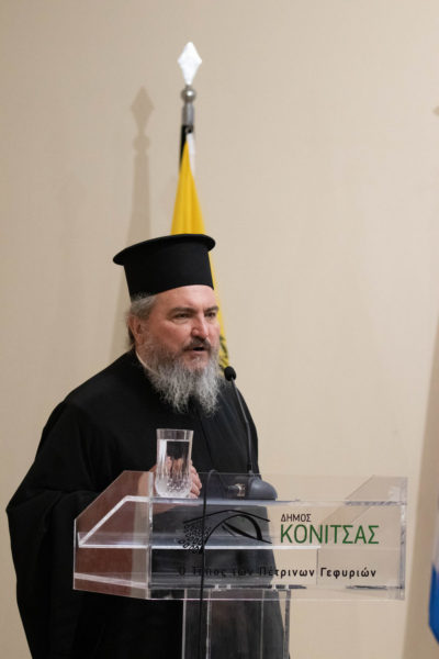 Πριν κλείσει την εκδήλωση η συντονίστρια κα. Αναστασία Χουρσάν, στο βήμα ανέβηκε ο σεβαστός π. Απόστολος Νάκος, εφημέριος του Ιερού Ναού Αγ. Κωνσταντίνου και Ελένης Κάτω Κονίτσης, που με πατρικές ευχές ευλόγησε όλους τους παρευρισκόμενους.