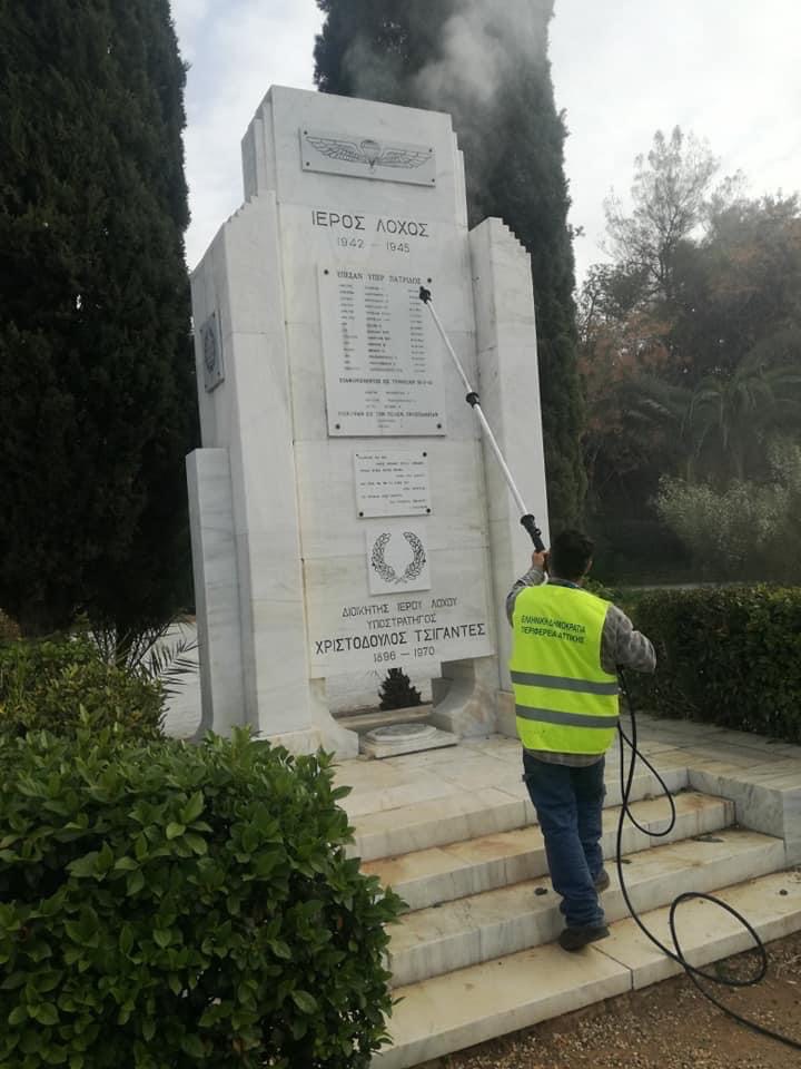 Όλες οι εργασίες καθαρισμού και αποκατάστασης γίνονται μετά από σχετική απόφαση του Περιφερειάρχη για την ανάπλαση της Λεωφόρου Ηρώων, ενόψει και των τελετών που θα λάβουν χώρα στο Πεδίον του Άρεως κατά την διάρκεια του γιορτασμού των 200 ετών από την επέτειο της Εθνικής Παλιγγενεσίας (25 Μαρτίου).