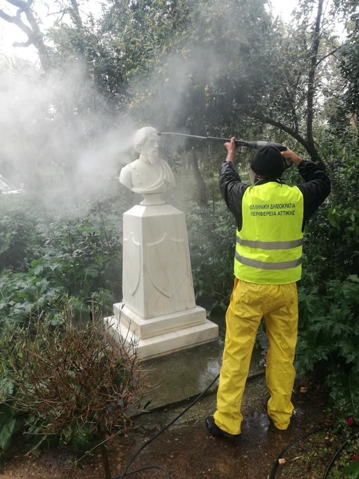 Δείτε φωτογραφικό υλικό από τον καθαρισμό των προτομών των Ηρώων του 1821 στο Πεδίον του Άρεως:
