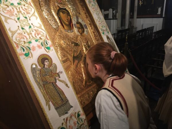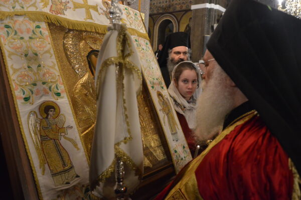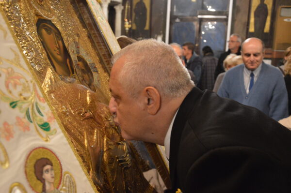 Στιγμές συγκίνησης χθες στον Πειραιά. Η Ιερά Μητρόπολη και ιδιαίτερα ο Ιερός Ναός Ευαγγελιστρίας Πειραιώς, υποδέχθηκαν το γνήσιο αντίγραφο της θαυματουργού εφέστιας εικόνος «Παναγίας Βηματάρισσας», από την Ιερά Μεγίστη Μονή Βατοπαιδίου, που ενθρονίστηκε μόνιμα πλέον στο Ναό.