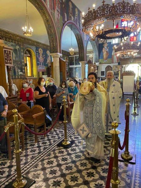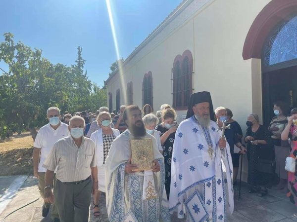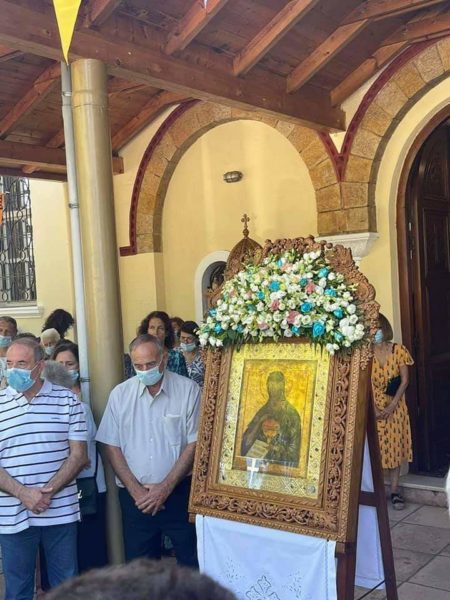 Μετά το πέρας της Θείας Ευχαριστίας, ακολούθησε η λιτανεία της Εικόνος πέριξ του ιερού ναού, η αρτοκλασία και η απόλυσις.
