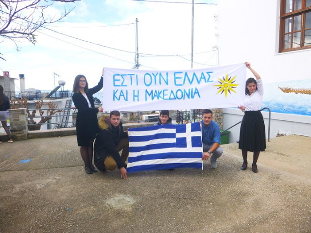 Οι μαθητές του Γυμνασίου-Λυκείου της Γλώσσας Σκοπέλου έκαναν το δικό τους αγώνα για την Μακεδονία κατά την χθεσινή εορτή των Τριών Ιεραρχών.