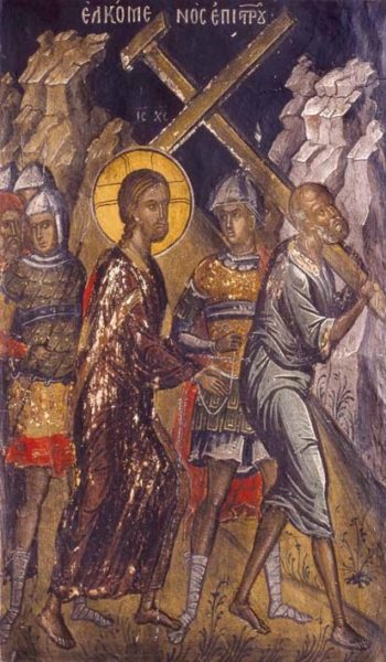 Οι στρατιώτες αφού Τον βασάνισαν με ποικίλους τρόπους, Τον ανάγκασαν να άρει το σταυρό Του και να βαδίσει προς τον Γολγοθά… Βασανισμένος, εξουθενωμένος, πληγωμένος ο Ιησούς κατέρρεε σχεδόν σε κάθε πέντε-δέκα βήματα…
