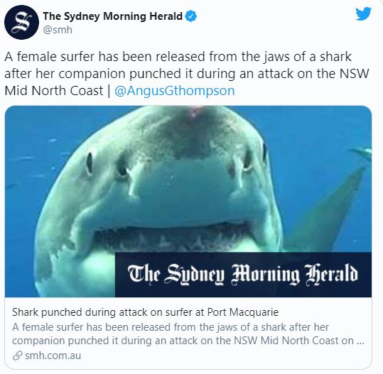 ΑΥΣΤΡΑΛΙΑ – Ένας άνδρας πήδηξε πάνω σε έναν μεγάλο λευκό καρχαρία και τον γρονθοκόπησε για να σώσει τη σύζυγό του που δέχτηκε επίθεση στην παραλία του Πορτ Μακουόρι, στη Νέα Νότια Ουαλία, μεταδίδει το ΑΠΕ – ΜΠΕ.