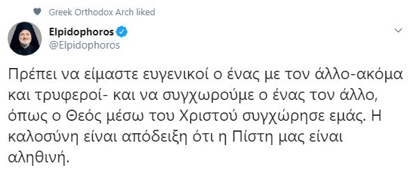 Σε πρόσφατη ανάρτησή του, ο Σεβ. Αρχιεπίσκοπος Αμερικής, κ. Ελπιδοφόρος, αναφέρει τα εξής: