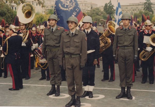 Στη φωτογραφία ο νυν υπουργός Νίκος Δένδιας, ως Δόκιμος Έφεδρος Αξιωματικός, στο Άγημα της 8ης Μεραρχίας Πεζικού κατά τη διάρκεια εκδηλώσεων στην Κέρκυρα για την Ενσωμάτωση των Ιονίων Νήσων.