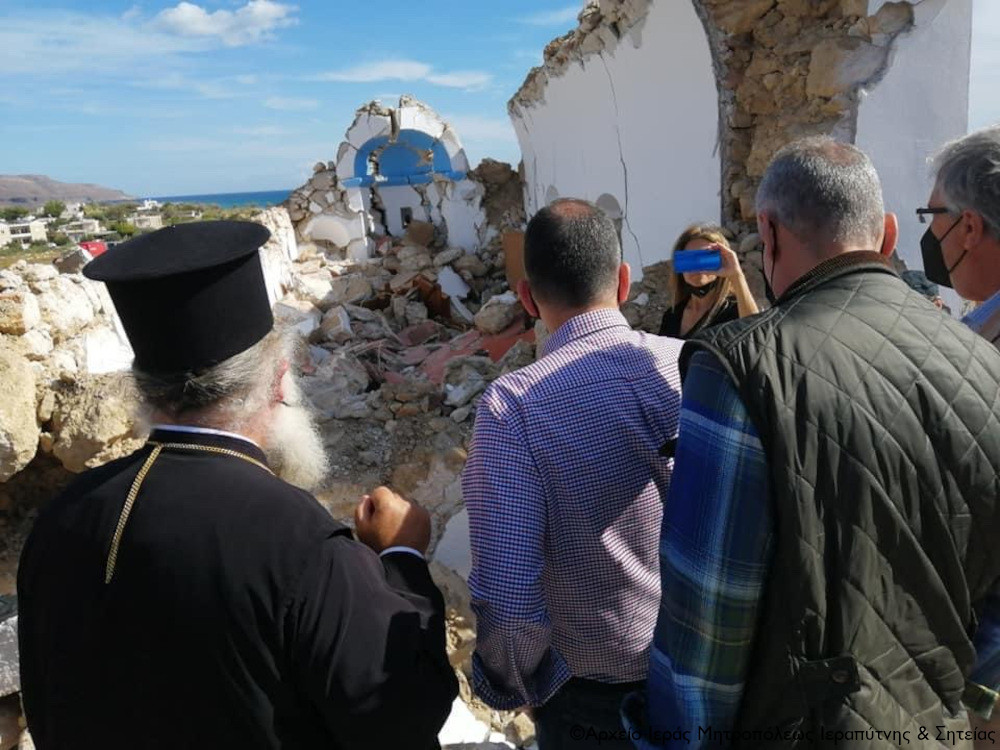 Στην επιτόπια αυτοψία παρέστησαν επίσης ο Μητροπολίτης Ιεραπύτνης και Σητείας κ. Κύριλλος, ο Υφυπουργός Πολιτικής Προστασίας και Κλιματικής Αλλαγής κ. Ευάγγελος Τουρνάς και ο Δήμαρχος Σητείας κ. Γεώργιος Ζερβάκης.