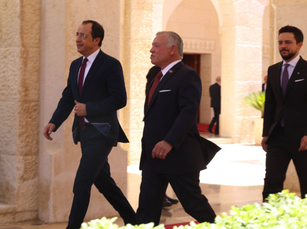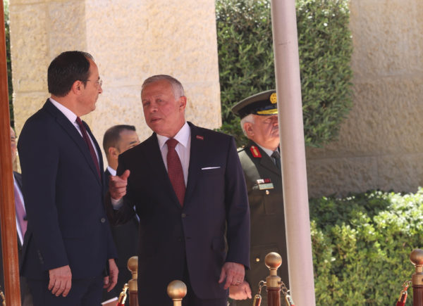 Συγκεριμένα, ο Πρόεδρος της Δημοκρατίας κ. Νίκος Χριστοδουλίδης έφτασε σήμερα το πρωί στο Αμμάν, της Ιορδανίας, όπου συναντήθηκε με τον Βασιλιά της χώρας Αμπντάλλα Β’. Το μεσημέρι, ο Πρόεδρος της Δημοκρατίας έφτασε στο Παλάτι Αλ Χουσεϊνίγια, όπου τον υποδέχθηκε ο Βασιλιάς Αμπντάλλα Β’, ενώ στρατιωτικό άγημα απέδιδε τιμές.