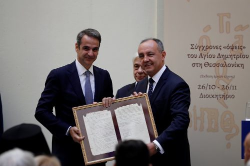 Με τη δέουσα λαμπρότητα τελέστηκαν στο Διοικητήριο, από τον Πρόεδρο της Ελληνικής Δημοκρατίας κ. Προκόπη Παυλόπουλο, παρουσία του Πρωθυπουργού κ. Κυριάκου Μητσοτάκη, τα εγκαίνια της έκθεσης τέχνης με τίτλο “Σύγχρονες όψεις του Αγίου Δημητρίου στη Θεσσαλονίκη”.