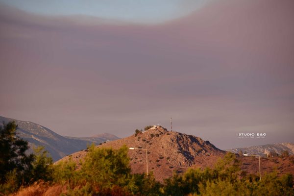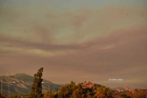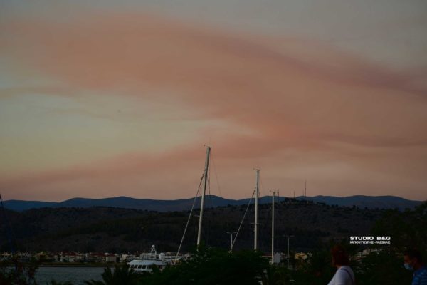 Πυκνό σύννεφο κάπνας από την φωτιά στα Μέγαρα σκέπασε σήμερα το Ναύπλιο. Αισθητή ήταν και η έντονη μυρωδιά καμένου.