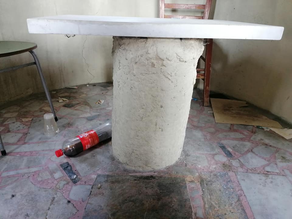 Η Αγία Τράπεζα στον λεηλατημένο Άγιο Γεώργιο της Μόριας είναι ένας ανεστραμμένος αρχαίος βωμός.