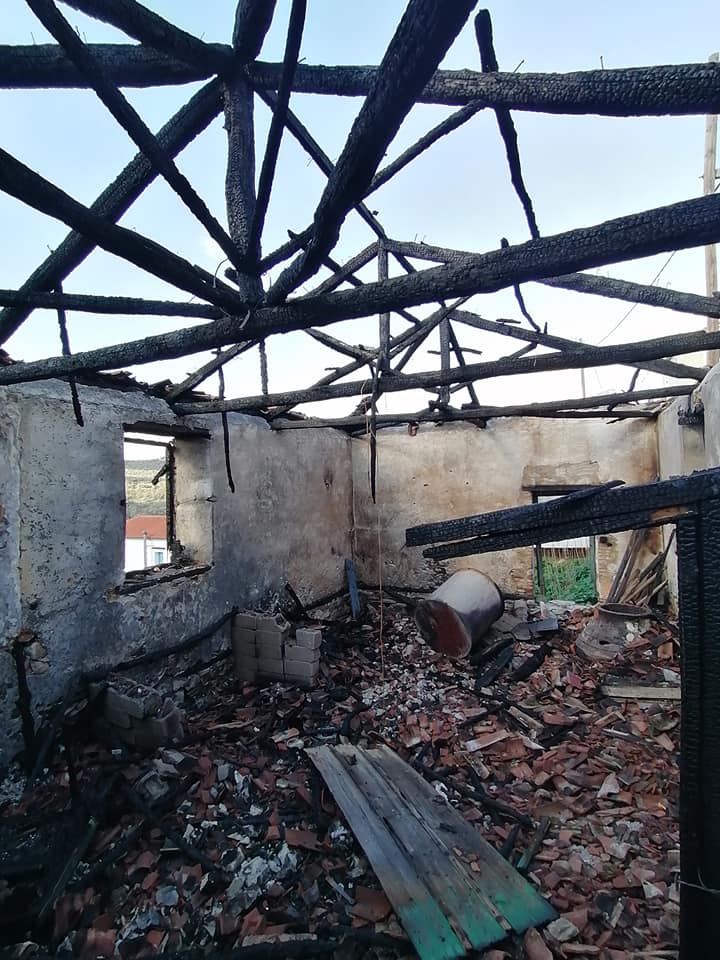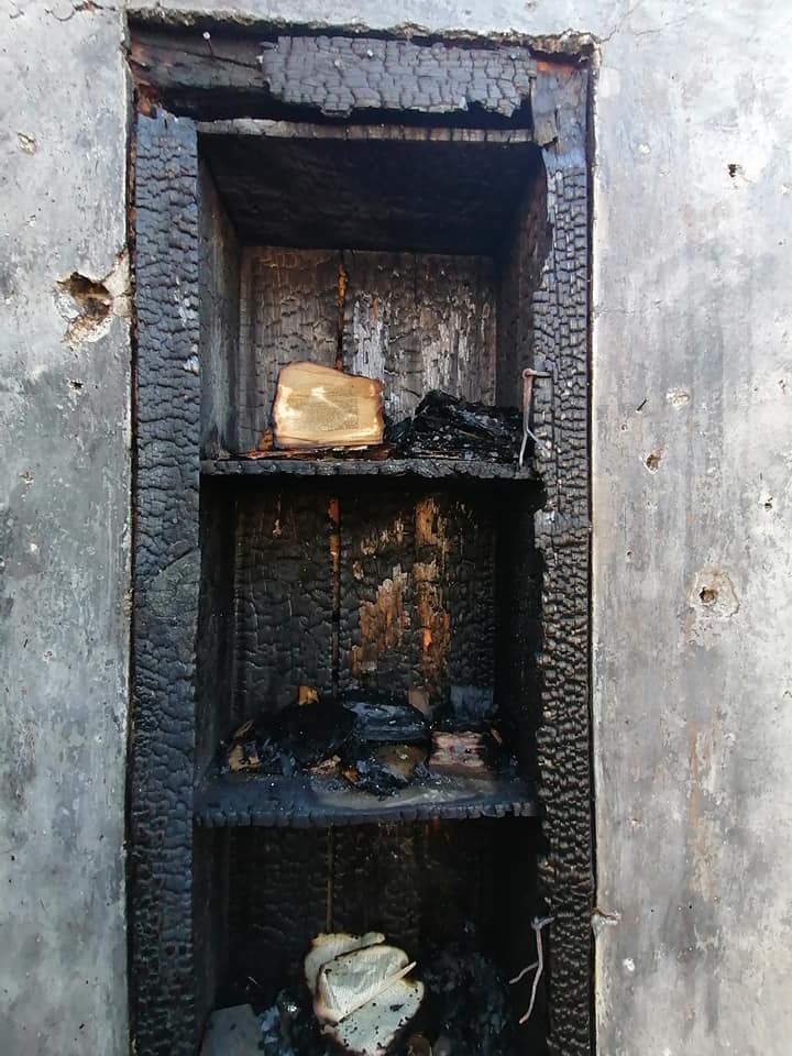 Από την οργή των βανδάλων δεν γλίτωσε ότι το ιστορικό κτήριο του 1868 στη Μόρια: Οι παλιοί στάβλοι του Ελευθεριάδη, με τα ξύλινα ράφια γεμάτα βιβλία και χειρόγραφες σημειώσεις που δε θα διαβαστούν ποτέ.