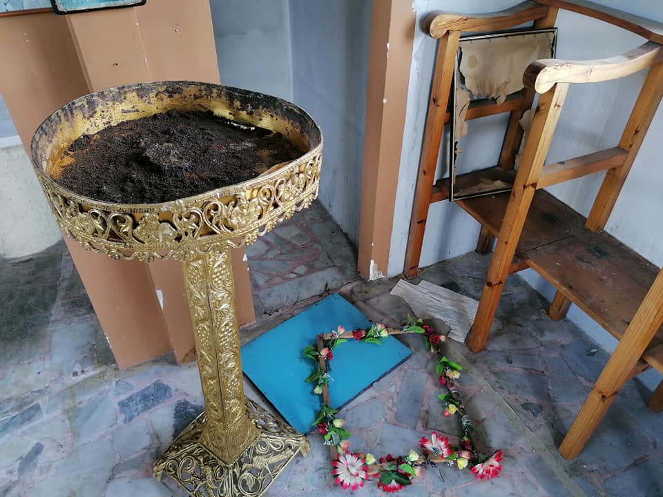 Σπασμένες Αγίες Τράπεζες, κατεστραμμένα μνήματα, σπασμένοι σταυροί, εμπρησμοί καταστροφές, σε σπάνιες αγιογραφίες, αναποδογυρισμένες εικόνες, περιττώματα, συνθήματα υπέρ του Αλλάχ στους τοίχους συνθέτουν το σκηνικό.