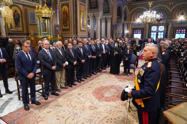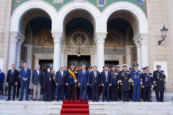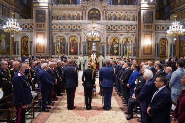 Η Πρόεδρος της Δημοκρατίας Κατερίνα Σακελλαροπούλου συμμετείχε σήμερα το πρωί στη Δοξολογία, στον Ιερό Μητροπολιτικό Ναό Αθηνών για τον εορτασμό της ημέρας των Ενόπλων Δυνάμεων. Στην ακολουθία χοροστάτησε ο Θεοφιλέστατος Επίσκοπος Ωρεών κ. Φιλόθεος, Αρχιγραμματέας της Ιεράς Συνόδου της Εκκλησίας της Ελλάδος