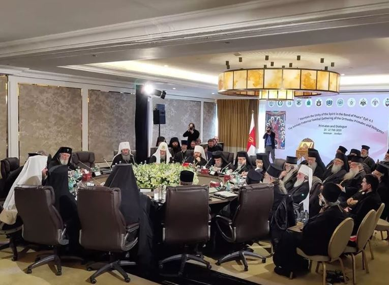 Μετά την ολοκλήρωση της συγκέντρωσης, οι Προκαθήμενοι και εκπρόσωποι των εκκλησιών εξέδωσαν την ακόλουθη δήλωση:“Στις 26 Φεβρουαρίου 2020 πραγματοποιήθηκε στο Αμμάν της Ιορδανίας μια συνάντηση εκπροσώπων τοπικών ορθόδοξων εκκλησιών, προτάσσοντας την ενότητα και τη συμφιλίωση εντός της Ορθοδοξίας. Οι συμμετέχοντες σημείωσαν την κατανόησή τους για την αγωνία του Πατριαρχείου Ιεροσολύμων για τον επικείμενο κίνδυνο του σχίσματος στην Ορθόδοξη Κοινότητα. Στη συνάντηση συμμετείχαν αντιπροσωπείες: της Ορθόδοξης Εκκλησίας των Ιεροσολύμων με επικεφαλής τον Πατριάρχη Ιεροσολύμων Θεόφιλο, της Ρωσικής Ορθόδοξης Εκκλησίας υπό την ηγεσία του Πατριάρχη Μόσχας και πασών των Ρωσιών κ.κ. Κυρίλλου, της Σερβικής Ορθόδοξης Εκκλησίας με επικεφαλής τον Πατριάρχη Σερβίας κ.κ. Ειρηναίο, της Ορθόδοξης Εκκλησίας της Ρουμανίας και της Πολωνικής Ορθόδοξης Εκκλησίας (σ.σ. οι οποίες απέστειλαν εκπροσώπους) καθώς και της Ορθόδοξης Εκκλησίας Τσεχίας και της Σλοβακίας με επικεφαλής τον Μακαριώτατο Αρχιεπίσκοπο Πρέσοβ και πάσης Τσεχίας και Σλοβακίας κ.κ. Ραστισλάβ.