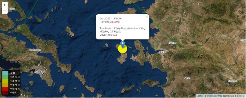 Επικαιρότητα 04 Δεκεμβρίου, 2021 Σεισμός 3,7 Ρίχτερ κοντά στη Χίο Διαδώστε: Σεισμική δόνηση 3,7 βαθμών της κλίμακας Ρίχτερ συνέβη στις 15:01:10 της 4ης Δεκεμβρίου, 16,2χλμ Βορειοδυτικά από τη Χίο και σε εστιακό βάθος 10,0 χιλιομέτρων. Διαδώστε: