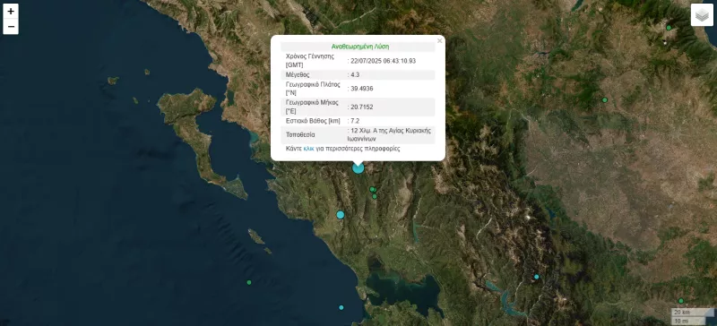 Σεισμός 4,3 Ρίχτερ στα Ιωάννινα