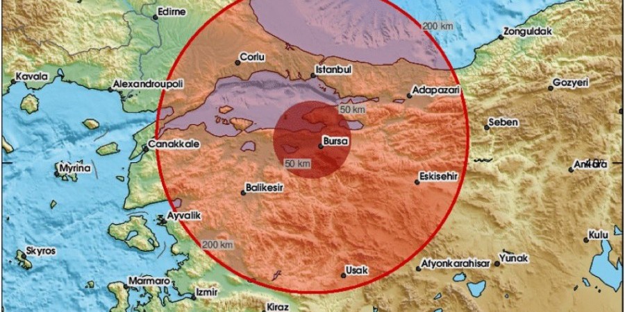 Σεισμική δόνηση μεγέθους 5,1 βαθμών σημειώθηκε στις 9:42 πμ ώρα Ελλάδας (τοπική 10:42 πμ) στην περιοχή του κόλπου του Γκέμλικ στο νότιοανατολικό τμήμα της Θάλασσας του Μαρμαρά.