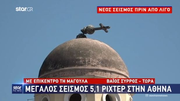 Ως αποτέλεσμα της επίκαιρης ισχυρής δόνησης στην ευρύτερη περιοχή του Λεκανοπεδίου Αττικής, λύγισε ο σταυρός στο καμπαναριό του ιερού ναού της Κοιμήσεως Θεοτόκου Μοναστηρακίου, όπως διαπιστώνουμε από την ως άνω ΦΩΤΟ.