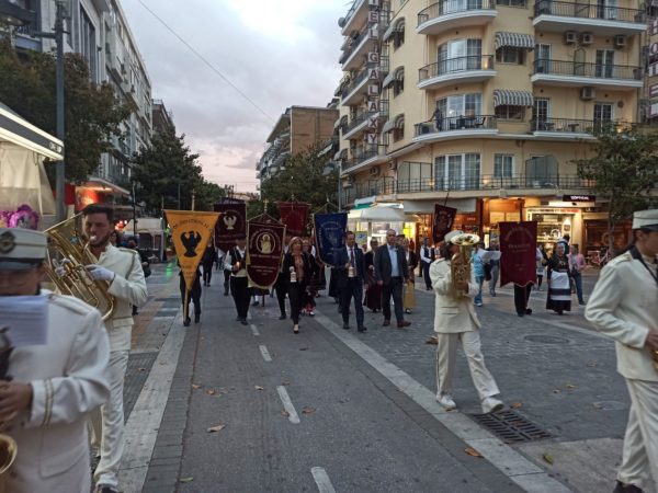 Ο Δήμαρχος Σερρών Αλέξανδρος Χρυσάφης με μέλη του Δημοτικού συμβουλίου αλλά και ένδεκα πολιτιστικών συλλόγων της πόλης συγκεντρώθηκαν στην πλατεία Κρονίου και κρατώντας μικρά φαναράκια με τη συνοδεία της Φιλαρμονικής του Δήμου Σερρών πραγματοποίησαν πορεία προς τον Ανδριάντα του Αγίου Ιερομάρτυρα Χρυσοστόμου Σμύρνης στην πλατεία Ελευθερίας.